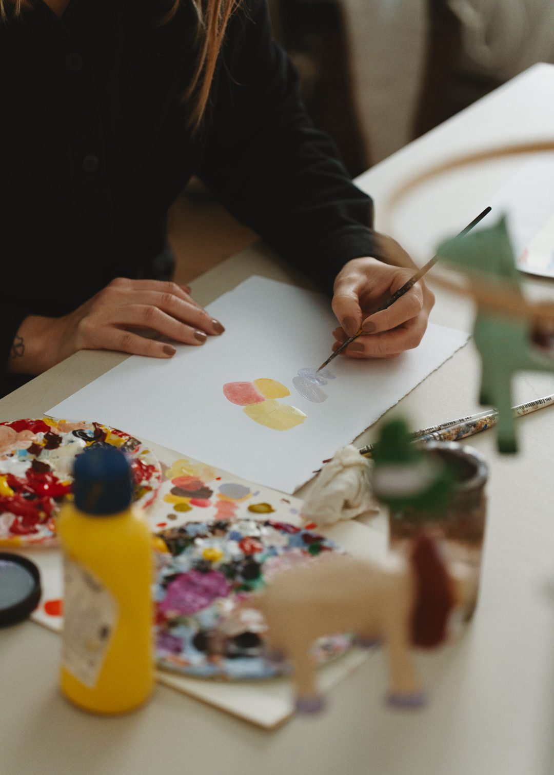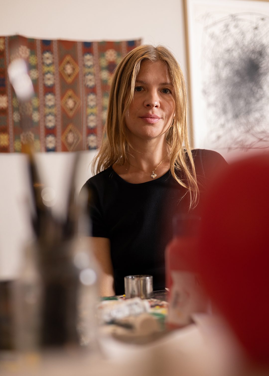 Her love for drawing people, animals, nature and city life and her fascination with colours form the cornerstone of her artistic identity. Finding inspiration in everyday life, memories and pop culture, as well as art from antiquity, this rich source of creative influence is echoed in the organic forms of her works. Paying close attention to the colours in her surroundings, she experiments with diverse palettes to convey stories, moods and emotions through acrylics, coloured pencils and liquid ink.