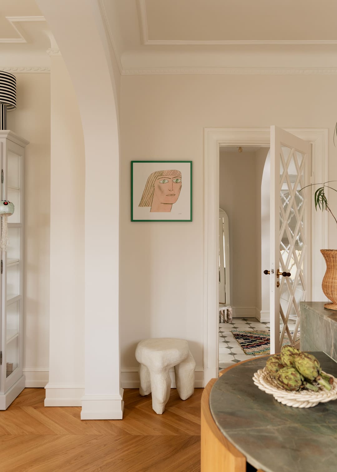 Her Curated by selection follows the same logic. She gravitates towards hand-drawn works that awaken memories and feelings of childhood – “in a way, it helps create the hygge,” she says. Colour is kept in dialogue rather than pushed into high contrast, aiming for calm and comfort across the rooms. Her favourite print is Fashion Diva 01 by Hanna Peterson – a piece that captures what she looks for when art becomes part of a home: something you can live with, return to and feel, every time you pass it.