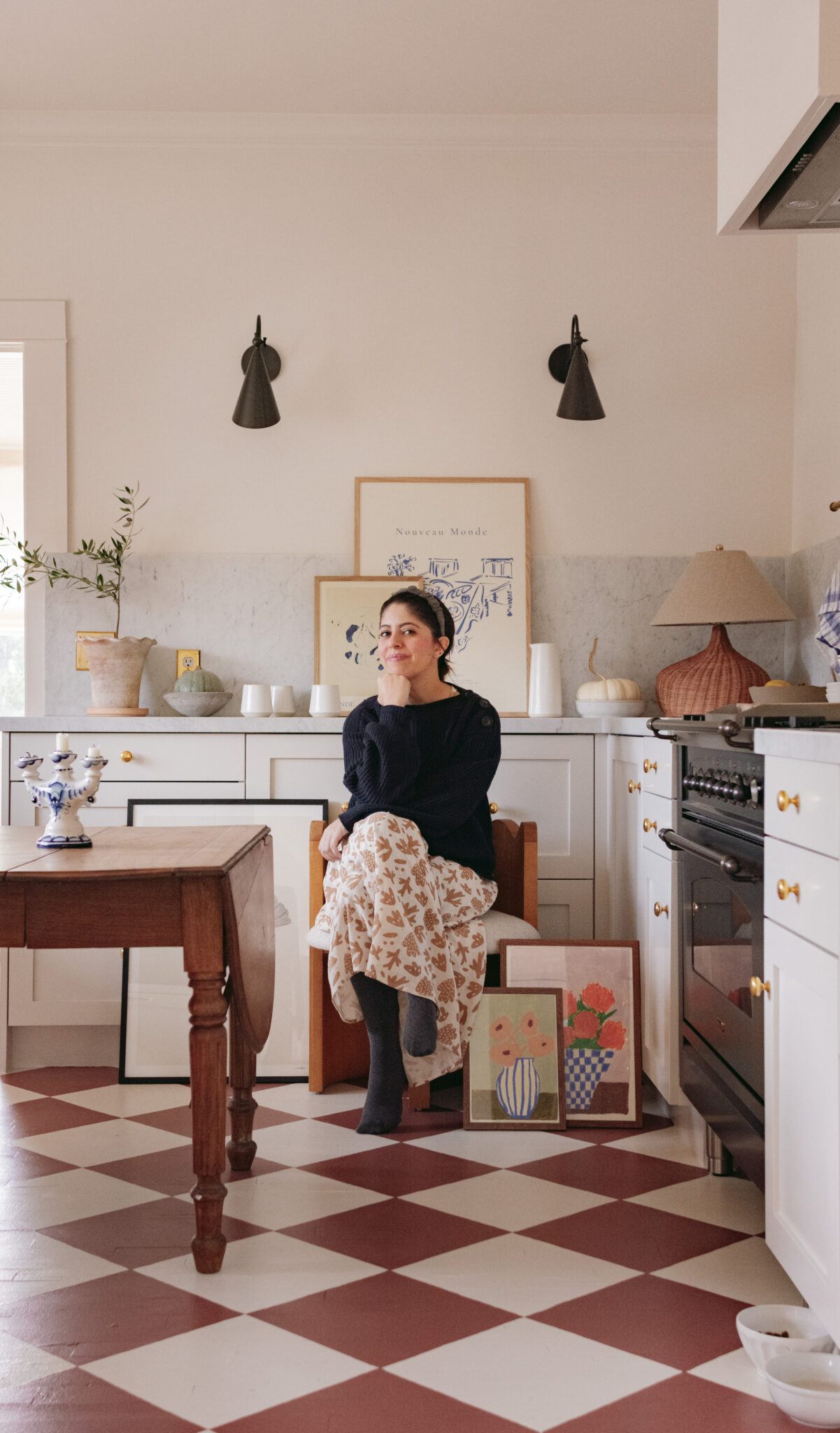Soft neutrals and rich hues create a cosy atmosphere throughout the home of Sara Charlesworth — the creator of Chalkwhitearrow. She and her husband are restoring an old bungalow, slowly turning it into a Parisienne-inspired ensemble of modern design, thrifted gems, and personal touches.